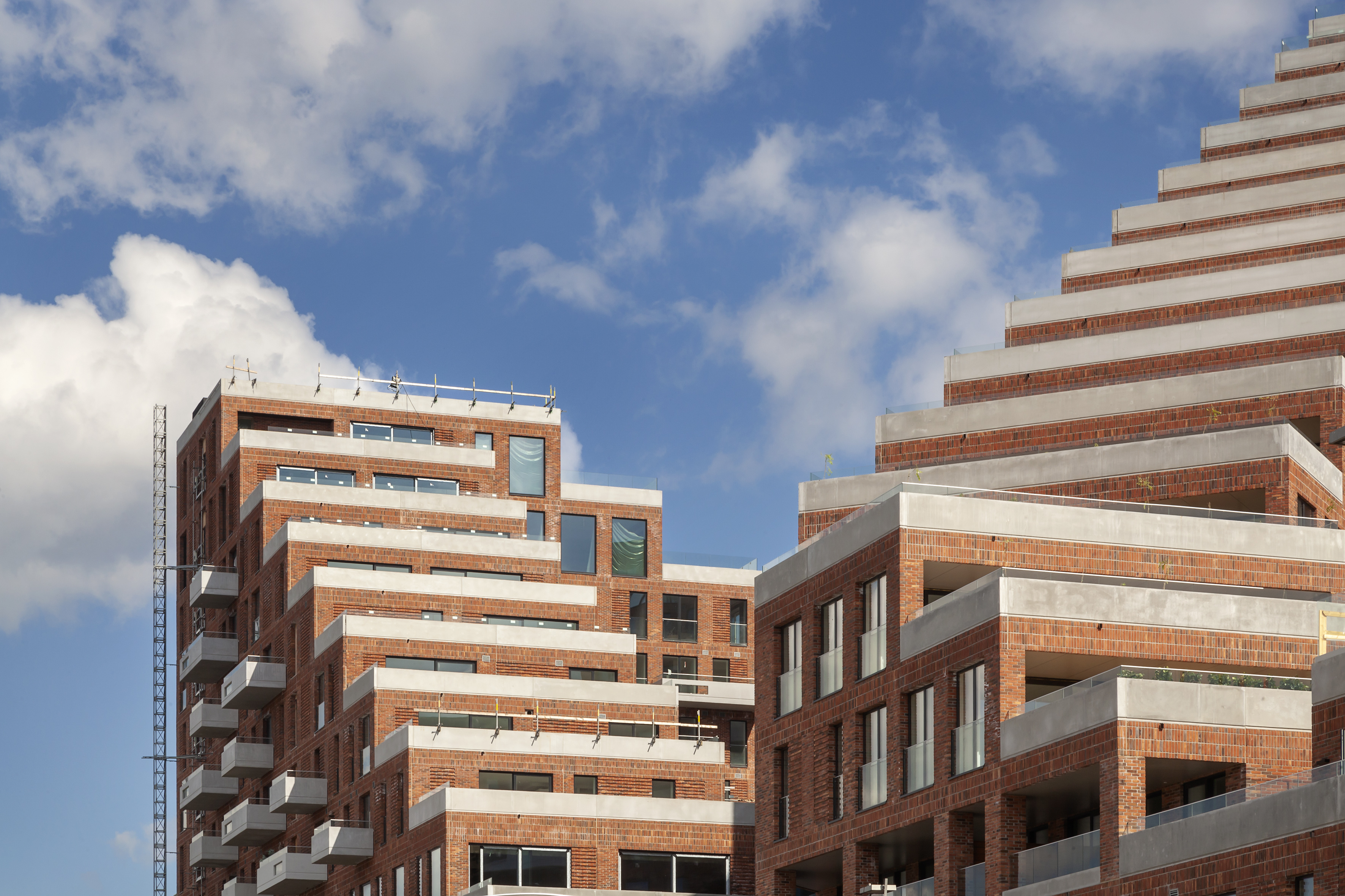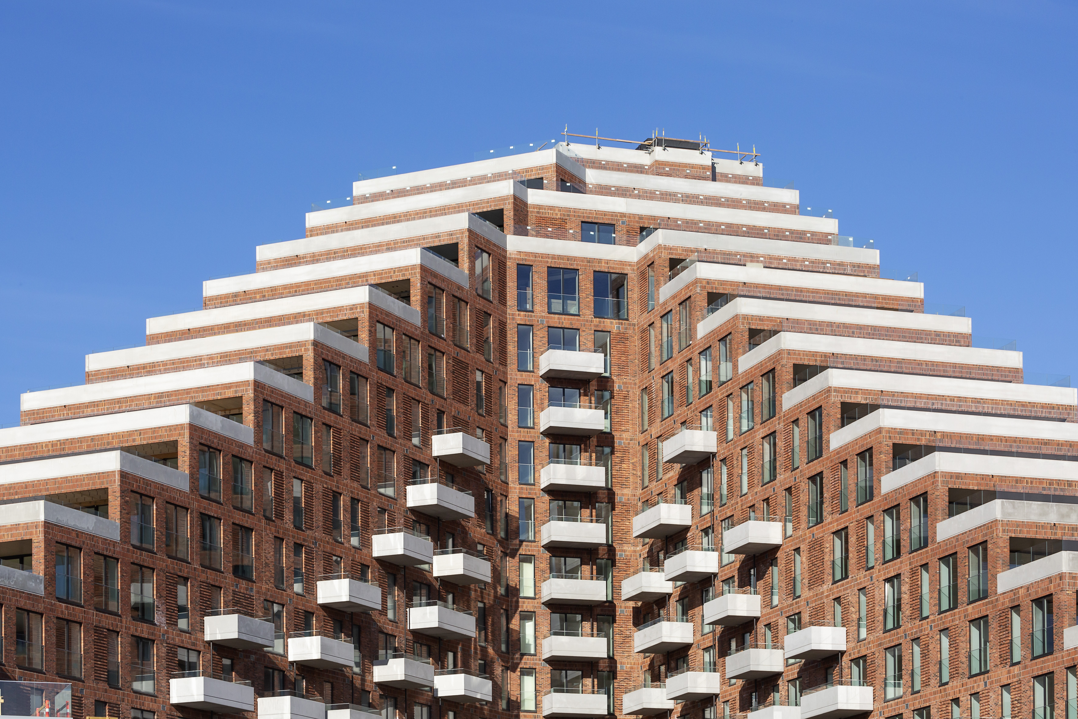 Kaksi suurta kolmionmuotoista lohkoa ylpeilevät porrastetuilla terasseilla ja tarjoavat henkeäsalpaavia näkymiä kaupunkiin ja satama-alueelle aina 16. kerrokseen asti. Rakennuttaja Bricksin ja Aart Architectsin Hi-Conin kanssa tekemän yhteistyön ansiosta tilavista UHPC-parvekkeista ja kattopuutarhoista, joissa on runsaasti tilaa huonekaluille ja vihreydelle, on nyt tullut todellisuutta.